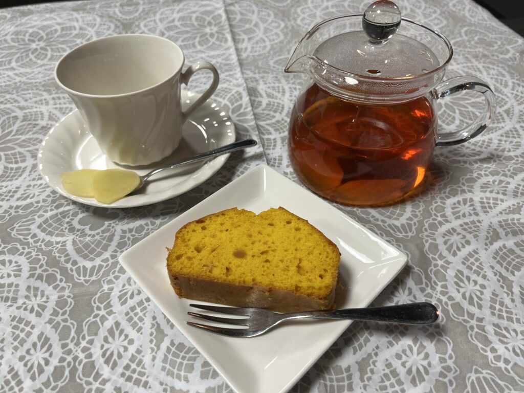 パウンドケーキの優しい甘い香り、そしてジンジャーの豊かな香りの中で「あんなにお昼いっぱい食べたのにね〜」「こんなに美味しいと食べられるんだね」「体がポカポカして、気持ちいい」と会話が飛び交います。