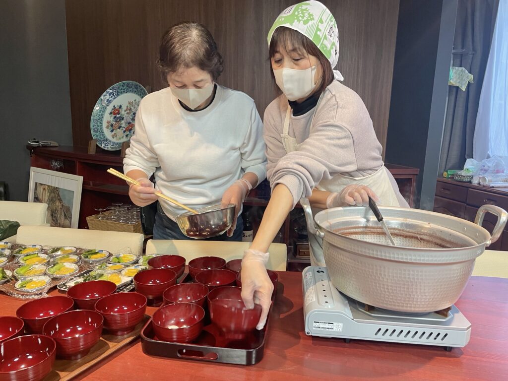 由美パートナーのお汁粉と、漬け物のプロ酒井パートナーの手作りの漬け物を召し上がっていただきます❤️